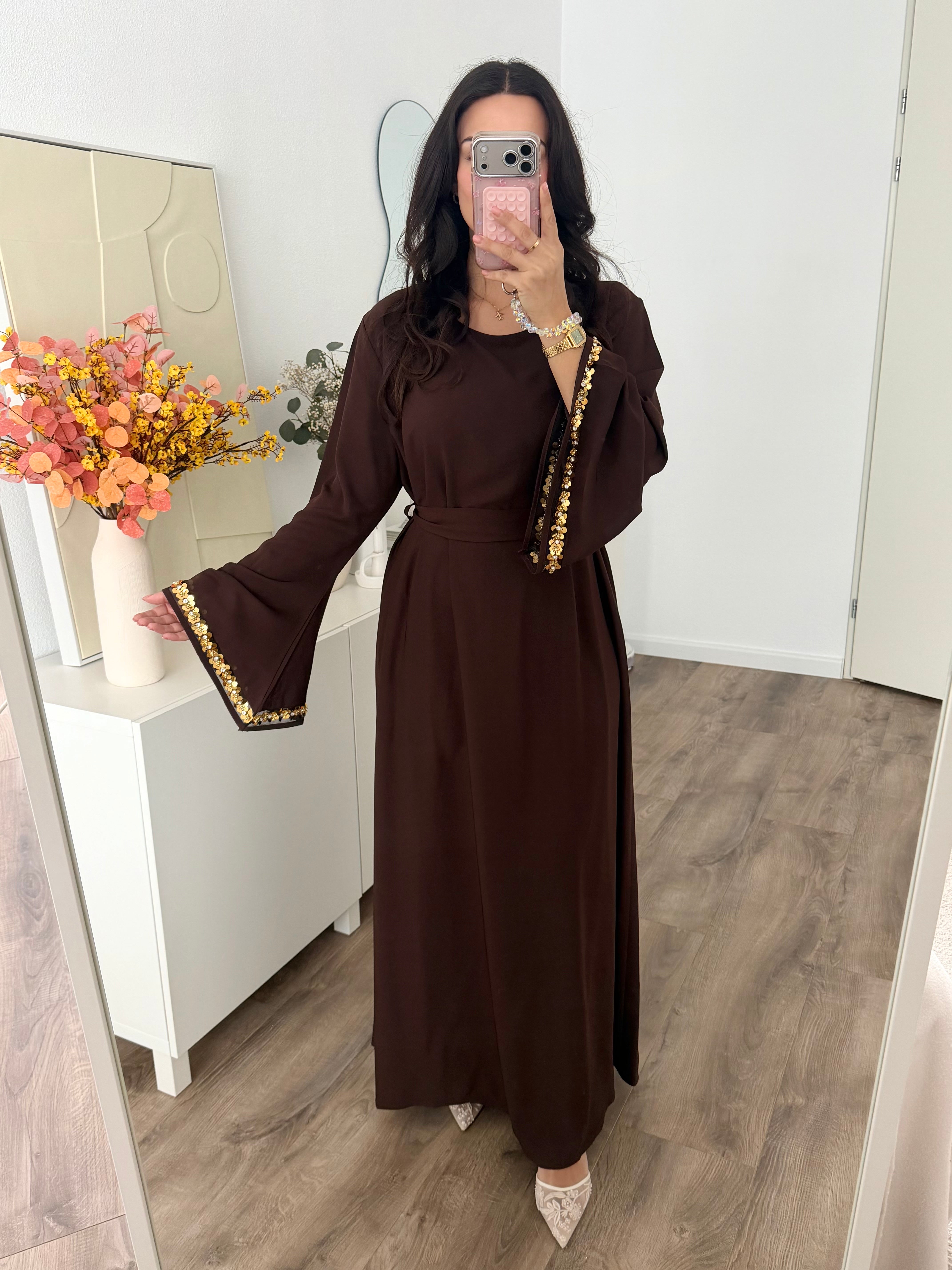 Shifa abaya with gold sequins