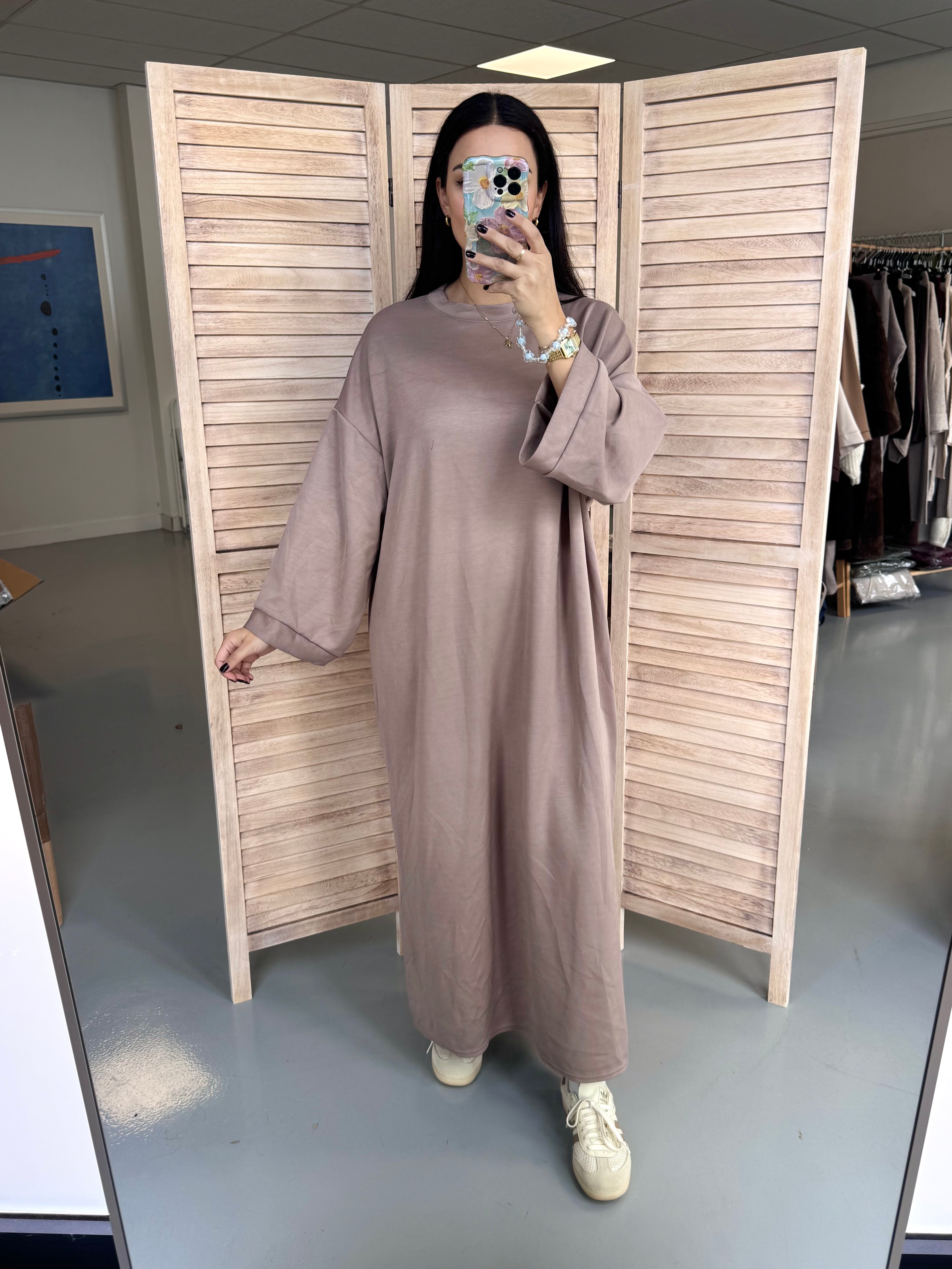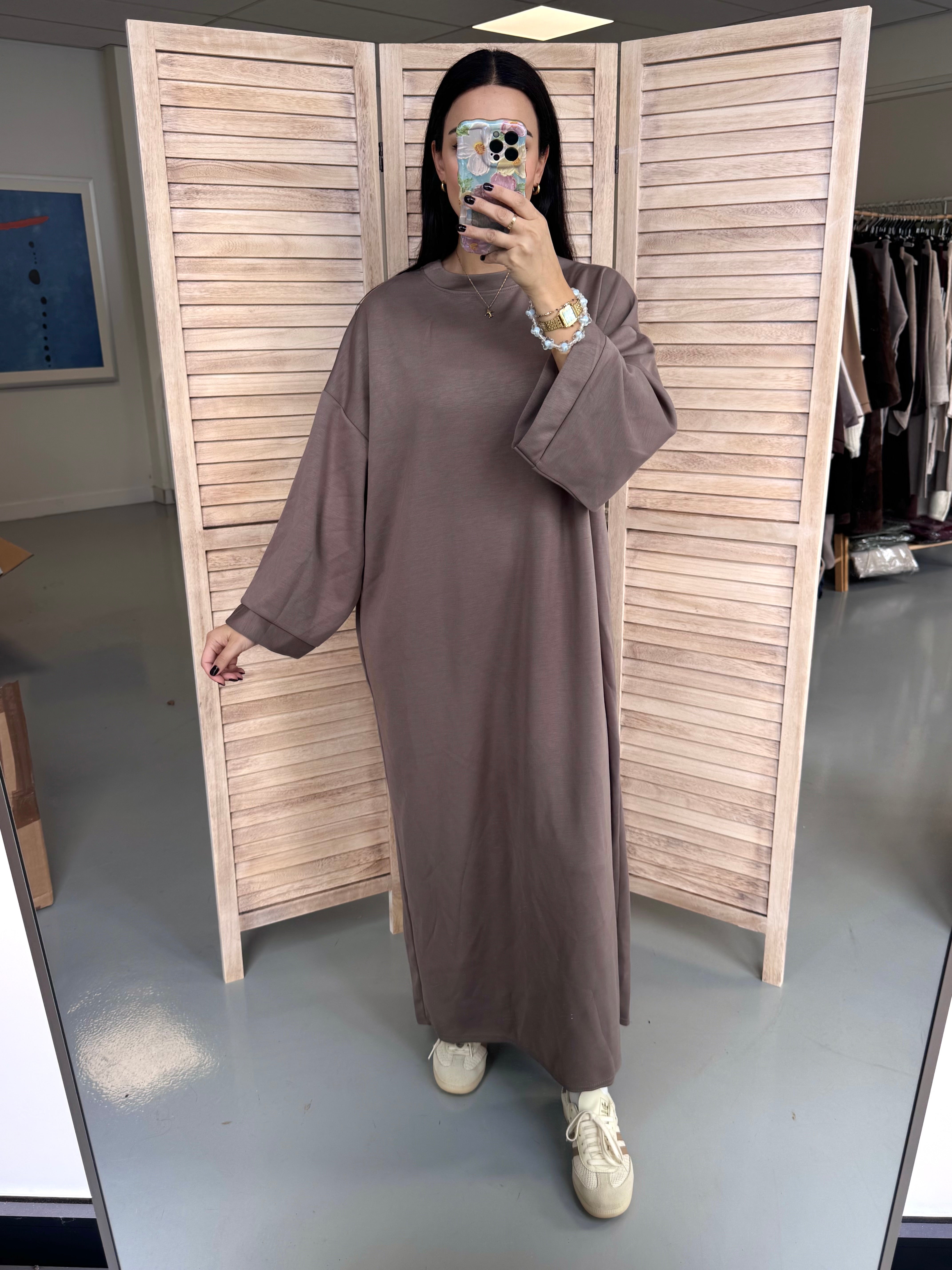 Een lange jurk van hele fijne stofkwaliteit. De jurk schijnt niet door. Dit item is een one size maat en wordt aanbevolen van maat S(36) t/m 3XL(46). De jurk rekt heel goed mee. Geschikt bij zwangerschap. Hijabproof.