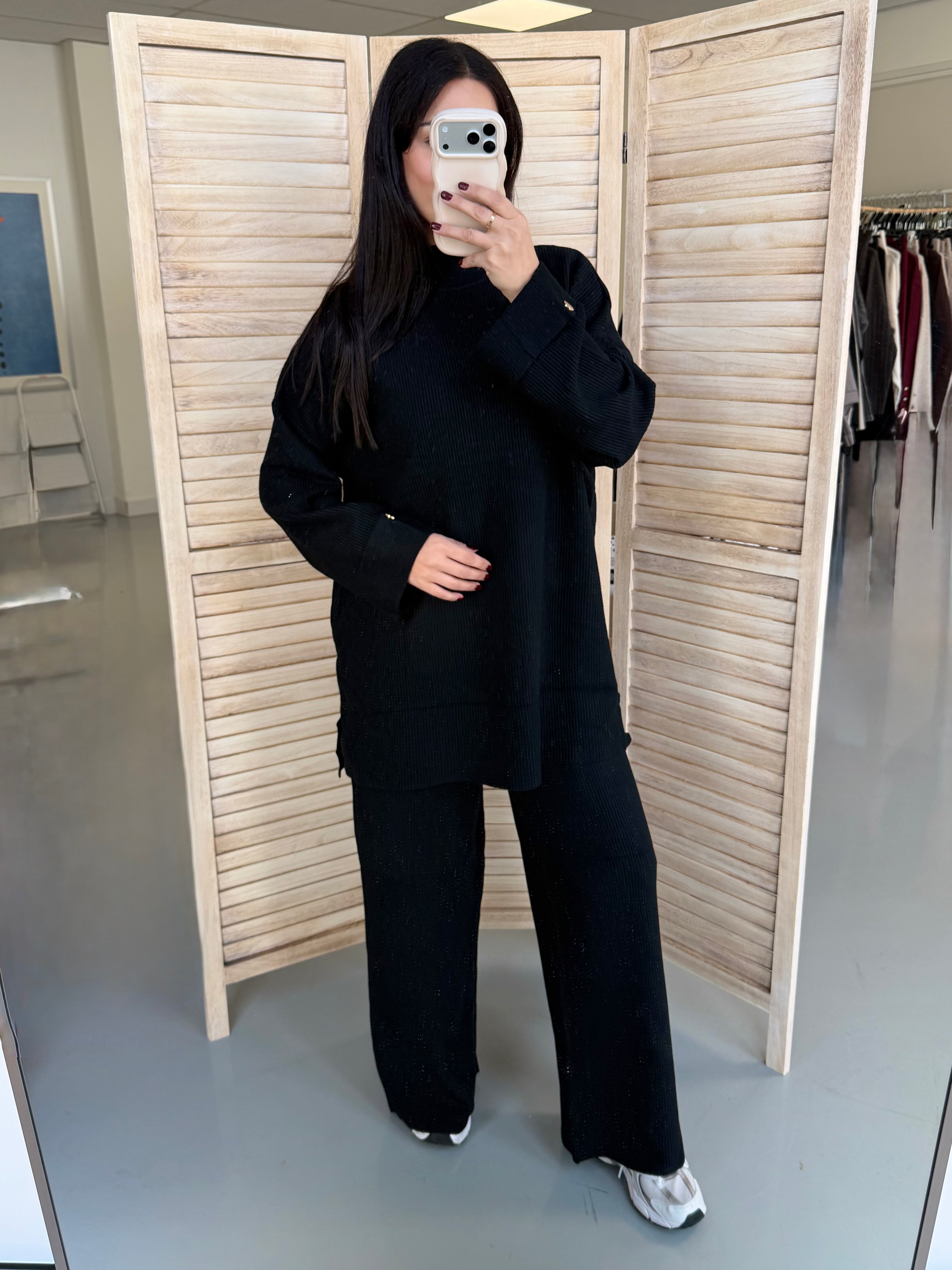 Een tweedelige set van hele fijne stofkwaliteit. De stof schijnt niet door. De trui valt mooi over de heupen. De mouwen hebben goude knopen voor extra detail. Dit item is een one size maat en wordt aanbevolen van maat S(36) t/m XXL(44). De stof rekt mee naarmate deze wordt gedragen. Eventueel hijabproof. Geschikt bij zwangerschap.