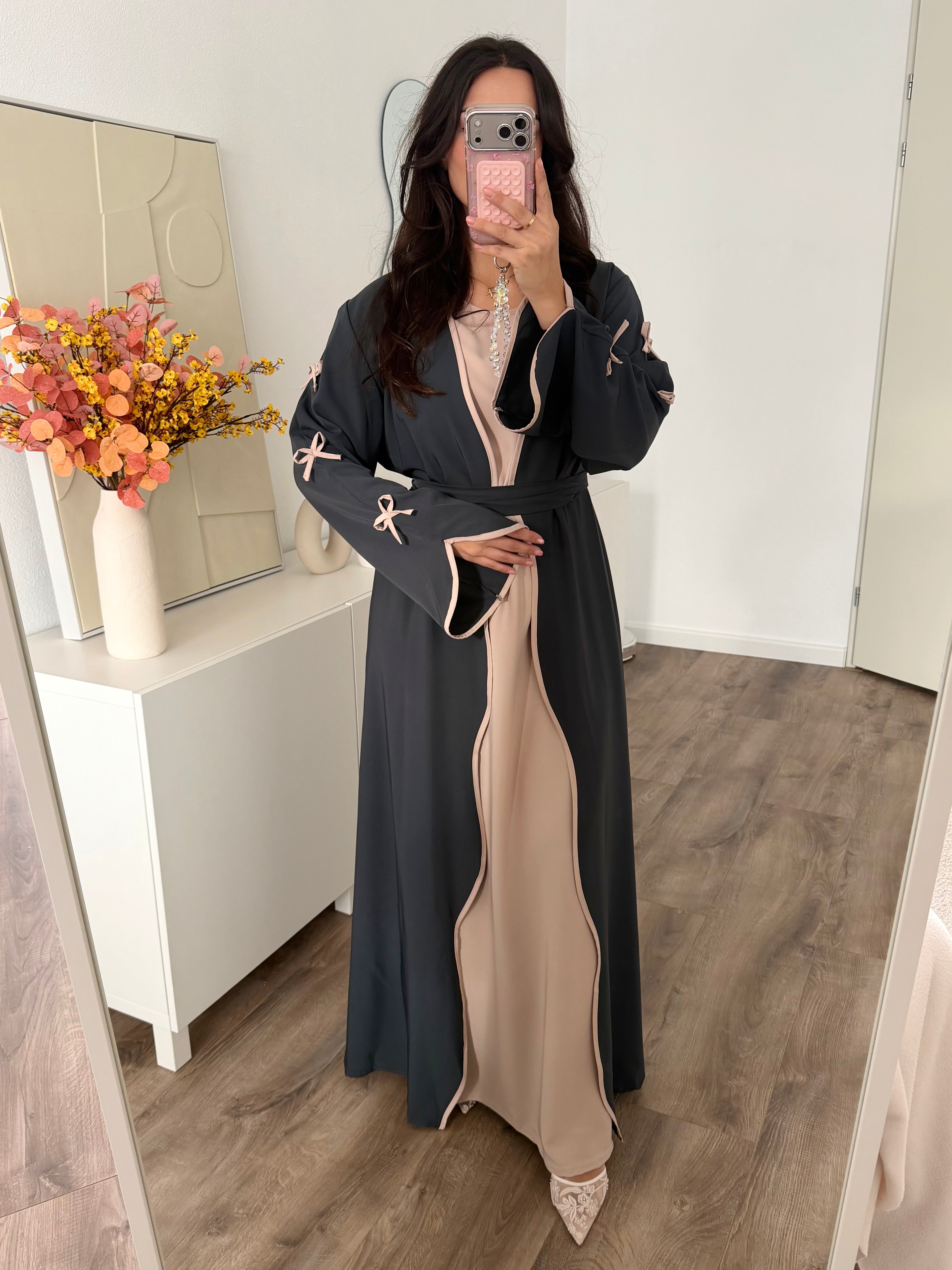 Atención: la abaya en la foto no forma parte de esta kimono. Pida el vestido interior a juego aquí